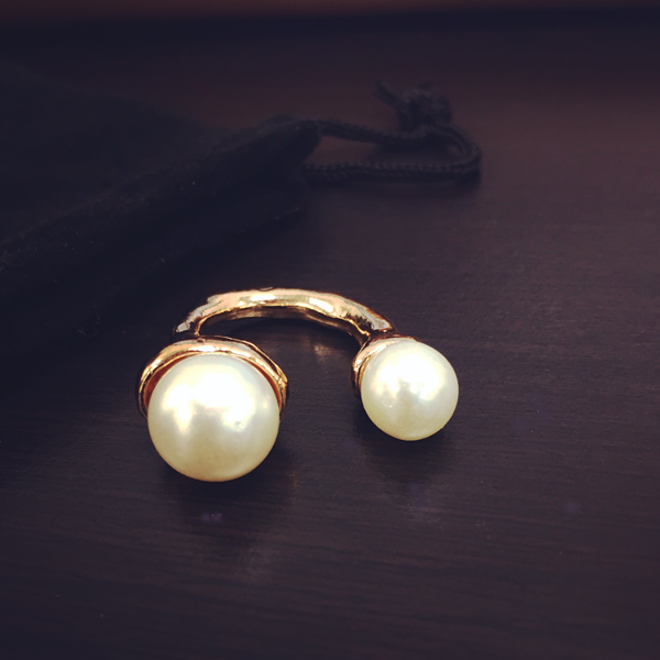 This adjustable ring gives a modern twist to a classic design. With two matching pearl beads resting on an 18K open clasp ring frame, this piece will add the perfect amount of tasteful high-fashion chic to any outfit. Available in your choice of silver or gold finish. A beautiful gift for any occasion. One size fits all.