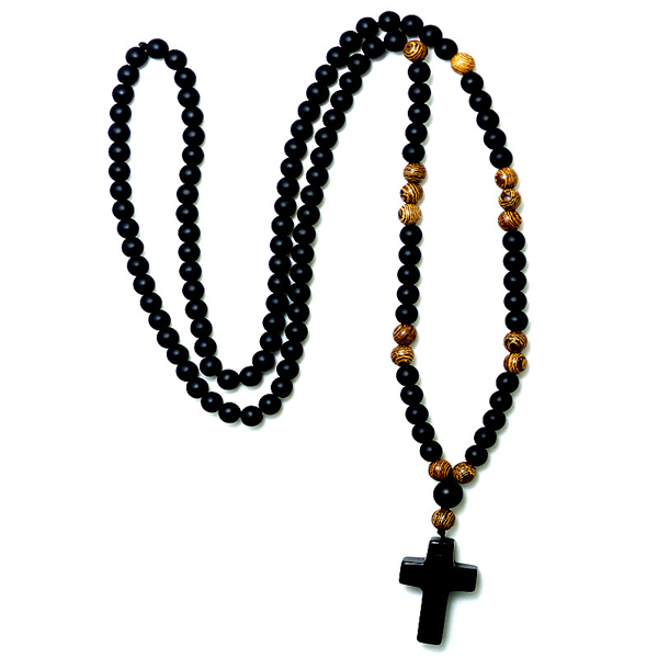 • Load image into Gallery viewer, Black Cross Stone Wood Bead Necklace
