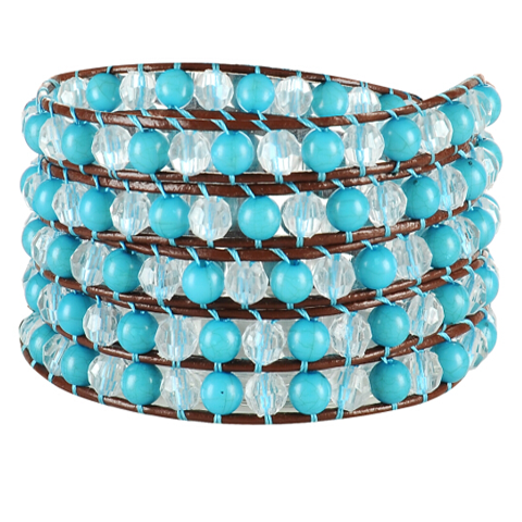 Blue Dragon is made with sea blue beads and crystal beads around wrapped dark brown leather. Add an elegant touch of color to your outfit with this flawless piece.